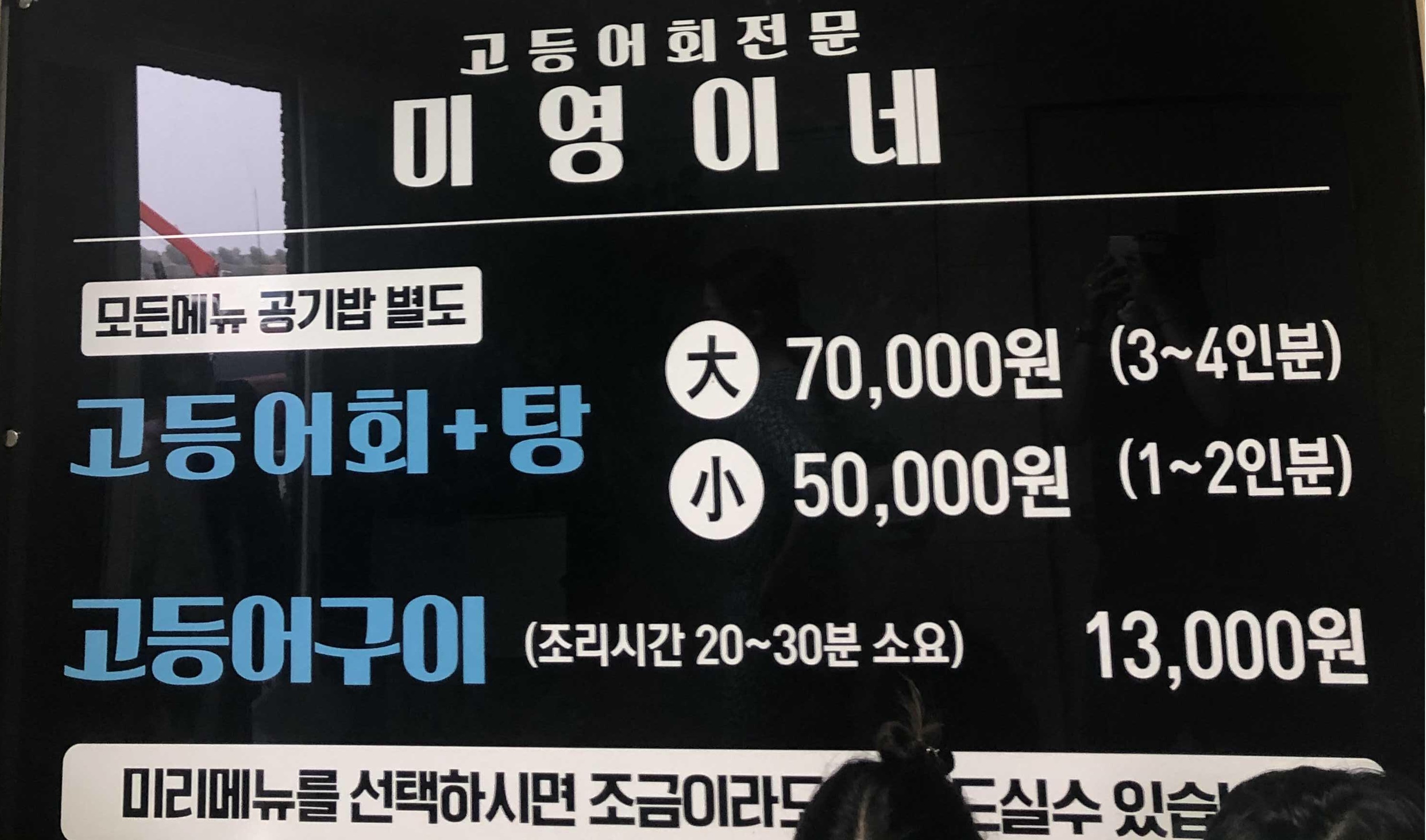 고등어회 작은 것 5만원, 큰 것 6만5천원 이었어요