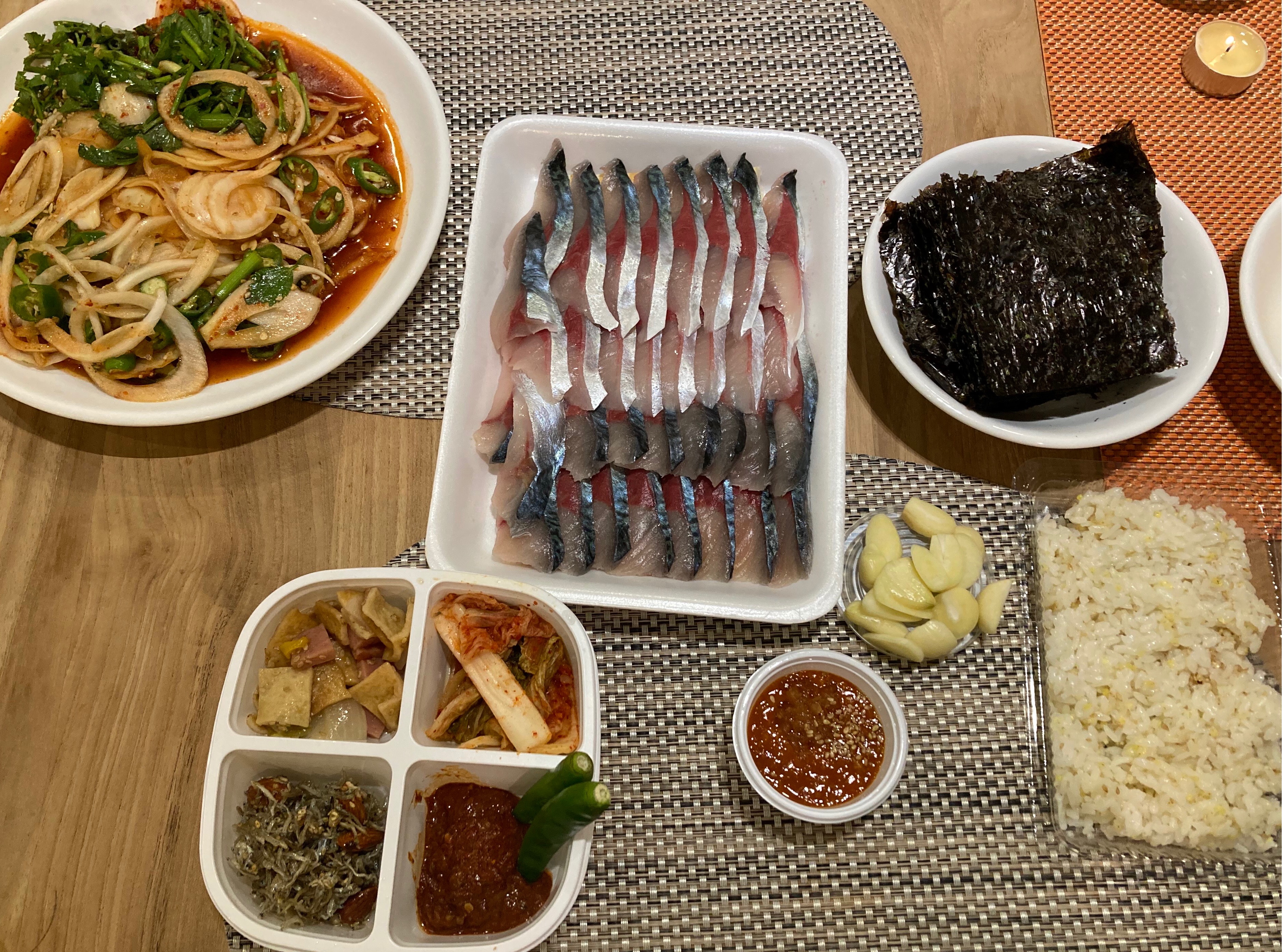 아쉬운 건 초장 간장이 없다는것, 씻은 묵은지가 없다는 것!!