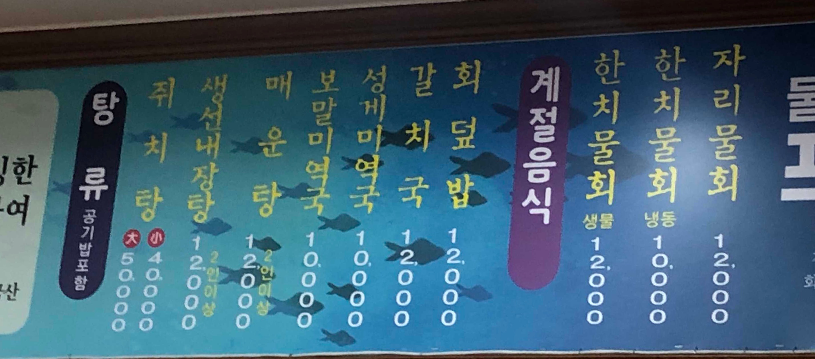 - 셋트 구성이 유동적입니다 (탕을 물회류 바꾸거나)
