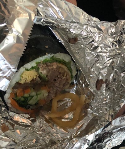 그냥 기본 김밥 같은데 유부튀김이 중간중간에 씹히는게 기름진 맛도 주면서요..