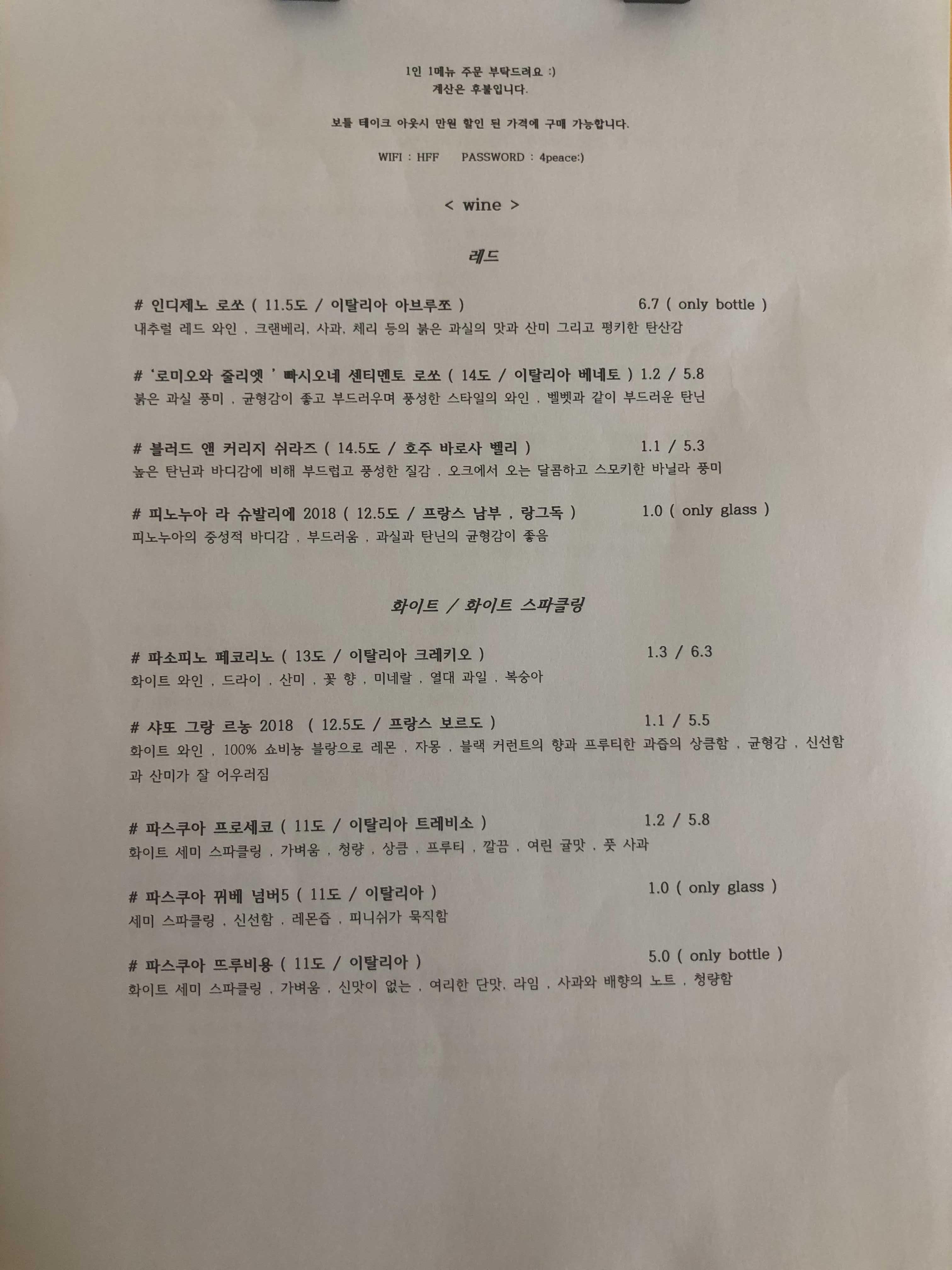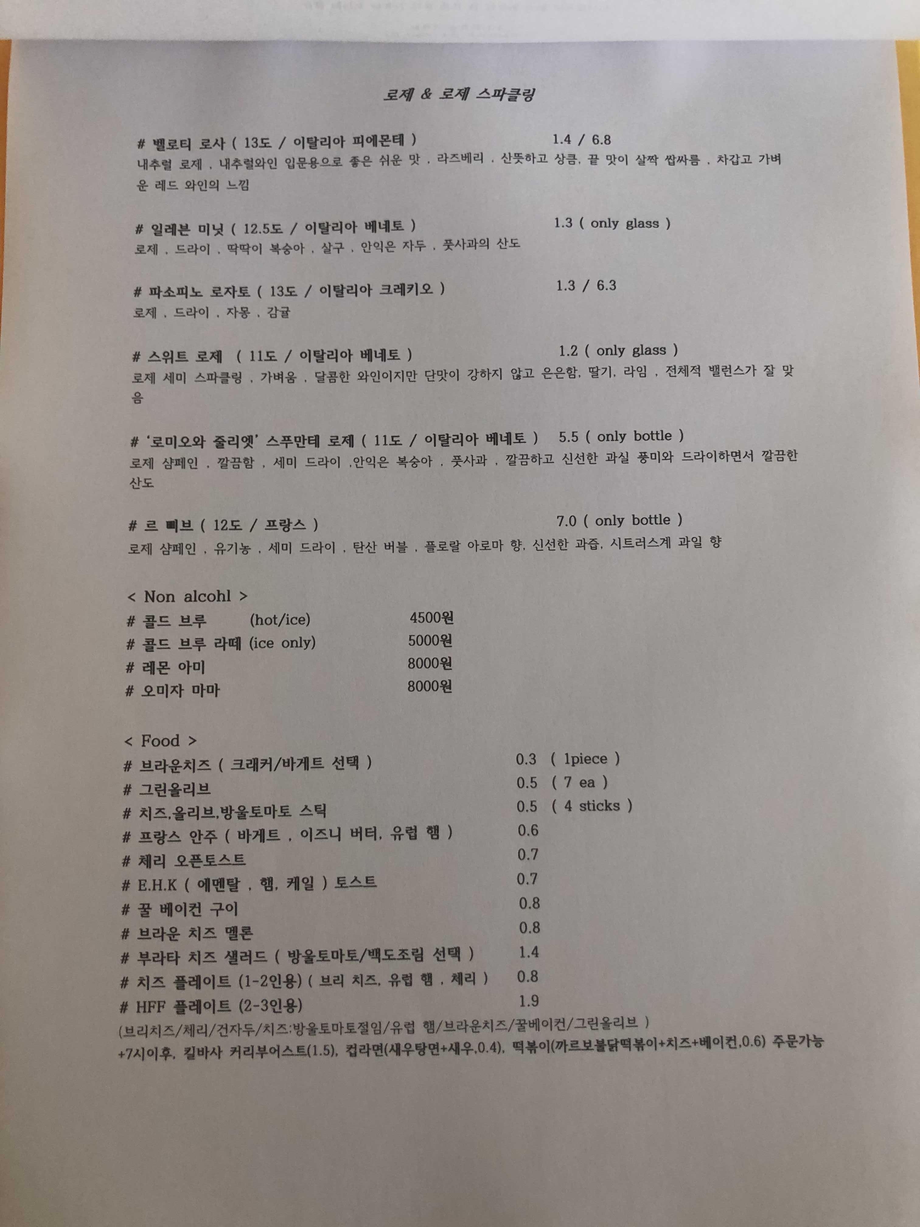 메뉴로는 거의 와인이 대부분입니다